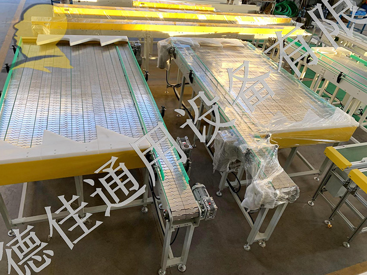 流水線運轉有:輸送機、皮帶輸送機、鏈板輸送機、爬坡輸送機以及伸縮輸送機等。